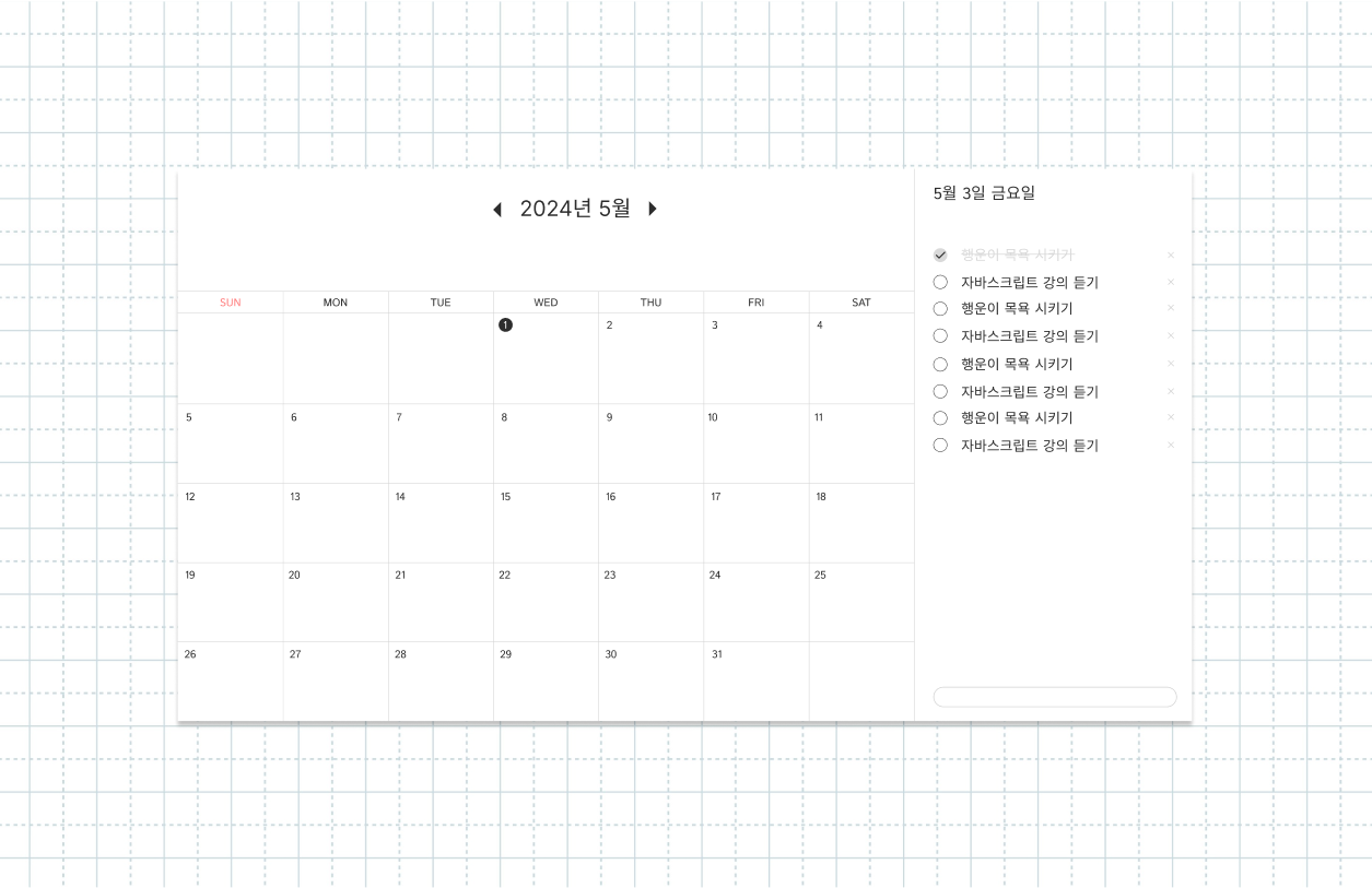 캘린더와 함께 간단한 할 일을 메모할 수 있는 사이트를 만들어보자 생각한 지 언....(기억 안남)